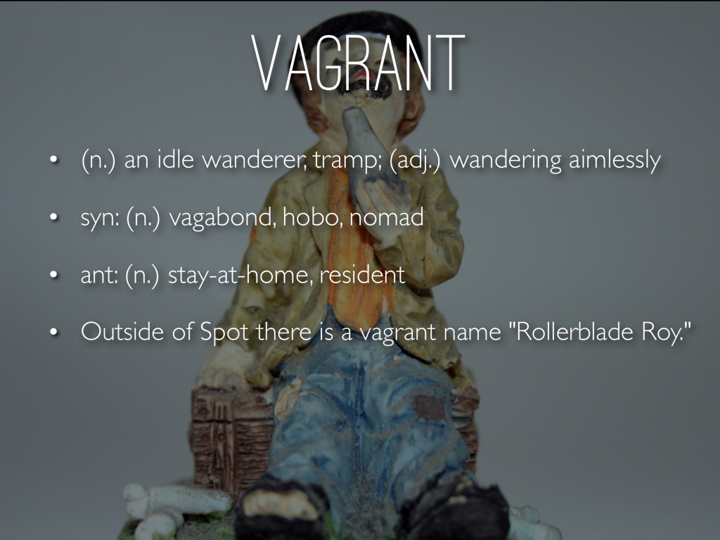 Outside of Spot there is a vagrant name "Rollerblade Roy."