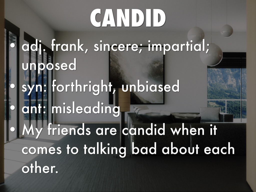 adj. frank, sincere; impartial; unposed