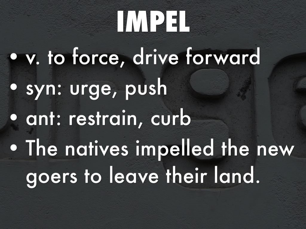 v. to force, drive forward