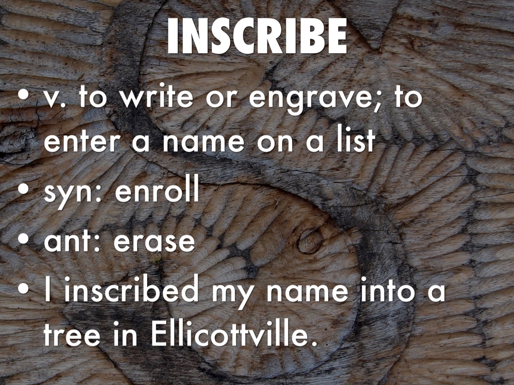 v. to write or engrave; to enter a name on a list