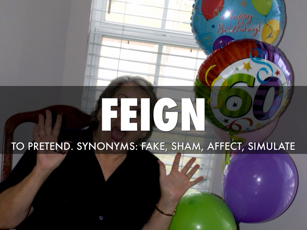 TO PRETEND. SYNONYMS: FAKE, SHAM, AFFECT, SIMULATE