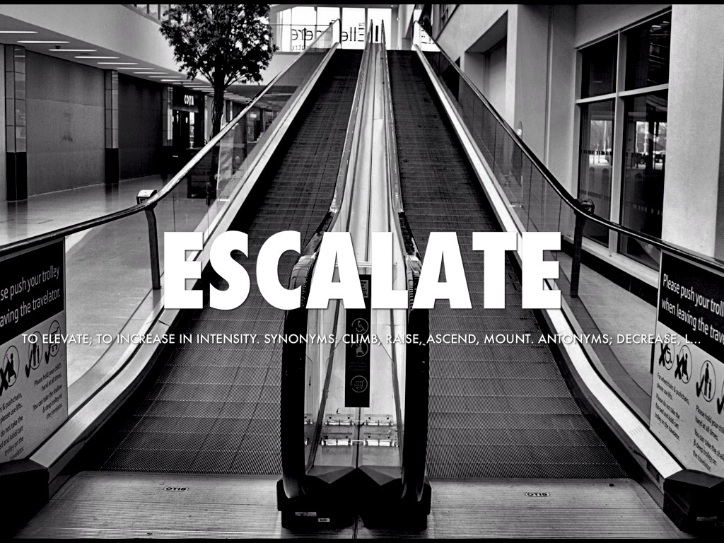 TO ELEVATE; TO INCREASE IN INTENSITY. SYNONYMS: CLIMB, RAISE, ASCEND, MOUNT. ANTONYMS; DECREASE, LESSEN, DESCEND, DEFUSE