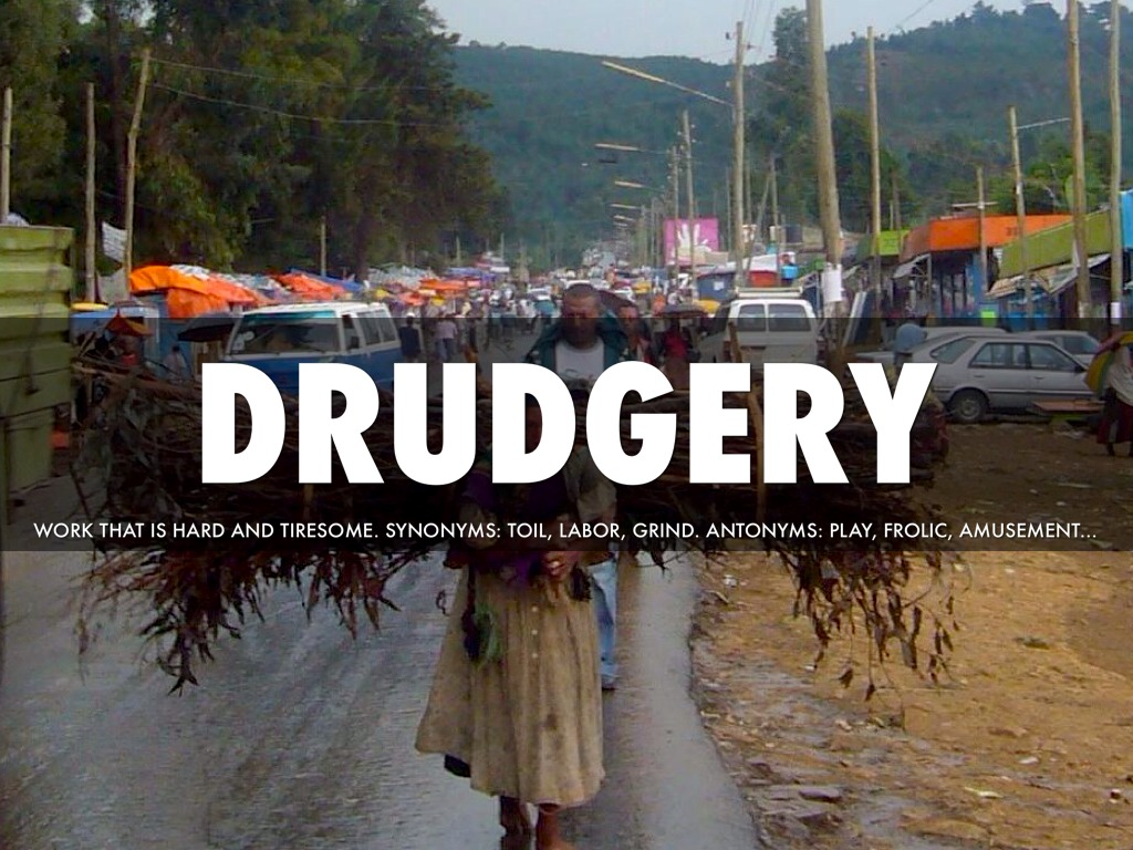 WORK THAT IS HARD AND TIRESOME. SYNONYMS: TOIL, LABOR, GRIND. ANTONYMS: PLAY, FROLIC, AMUSEMENT, RECREATION, FUN
