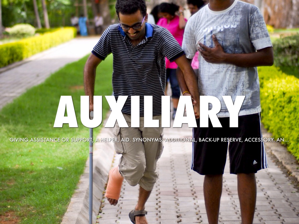 GIVING ASSISTANCE OR SUPPORT; A HELPER, AID. SYNONYMS: ADDITIONAL, BACK-UP RESERVE, ACCESSORY. ANTONYMS: MAIN, PRIMARY, PRINCIPAL