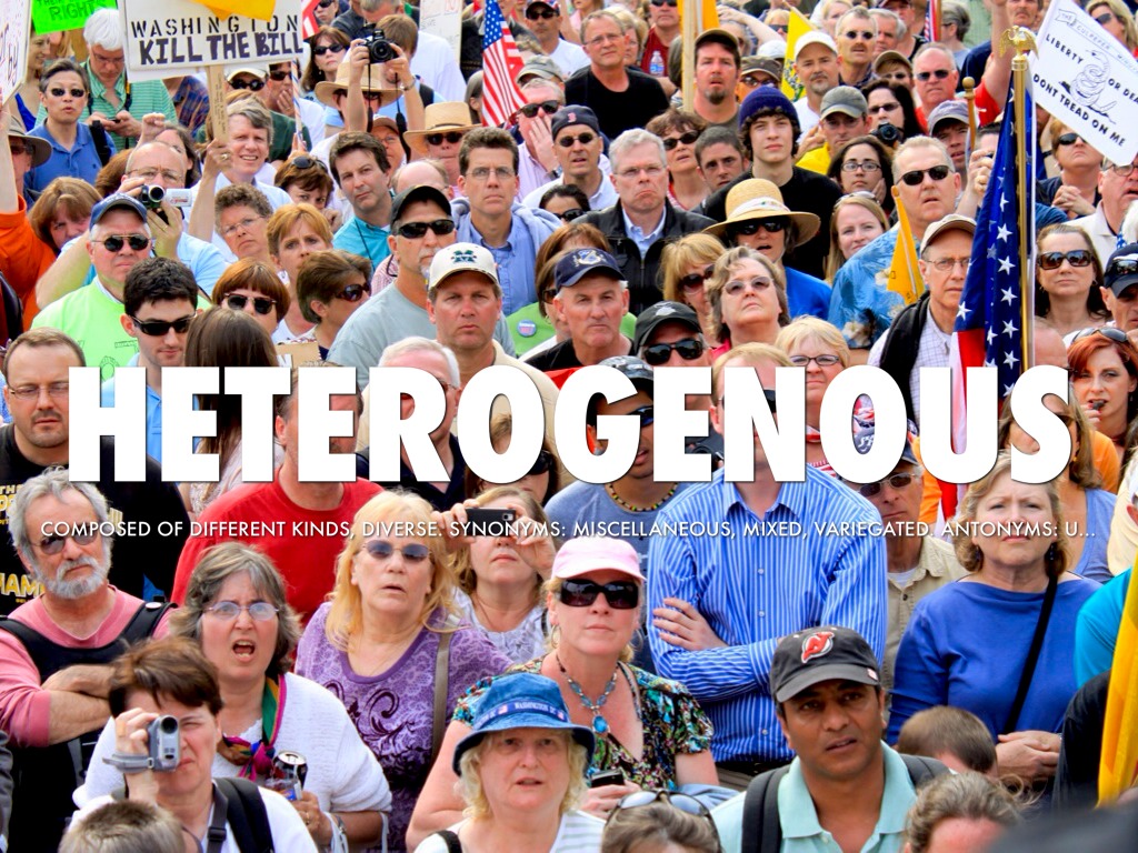 COMPOSED OF DIFFERENT KINDS, DIVERSE. SYNONYMS: MISCELLANEOUS, MIXED, VARIEGATED. ANTONYMS: UNIFORM, HOMOGENOUS, OF A PIECE