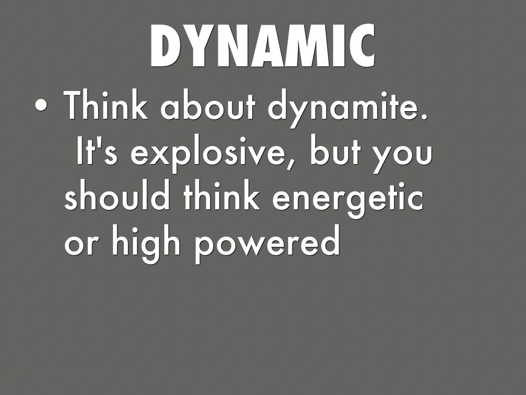 Think about dynamite. It's explosive, but you should think energetic or high powered