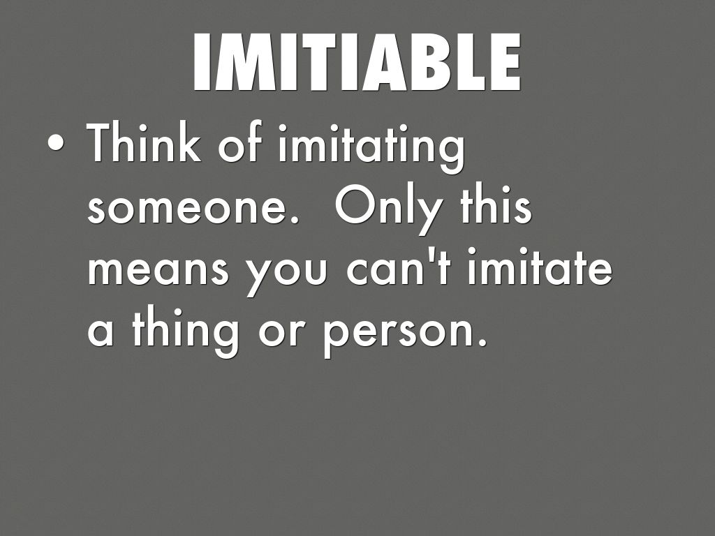 Think of imitating someone. Only this means you can't imitate a thing or person.