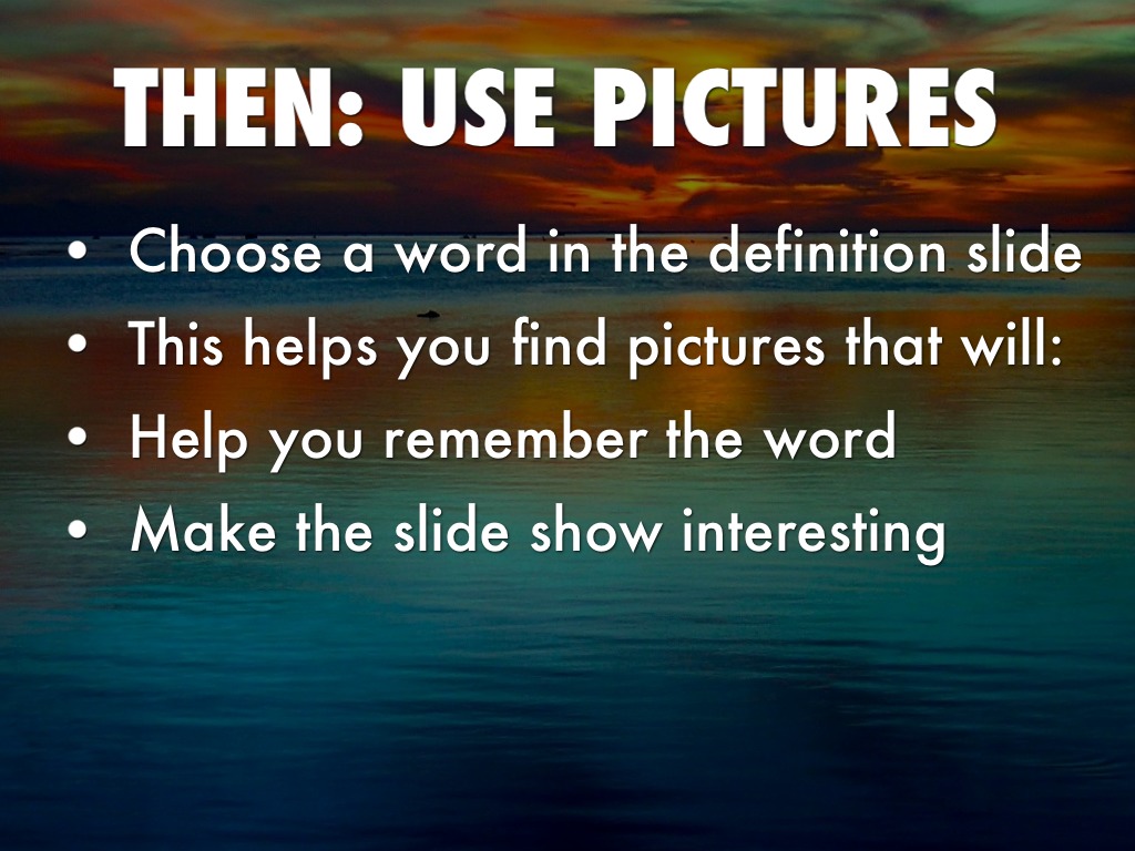 USE HAIKU DECK TO TYPE YOUR WORDS AND DEFINITIONS
