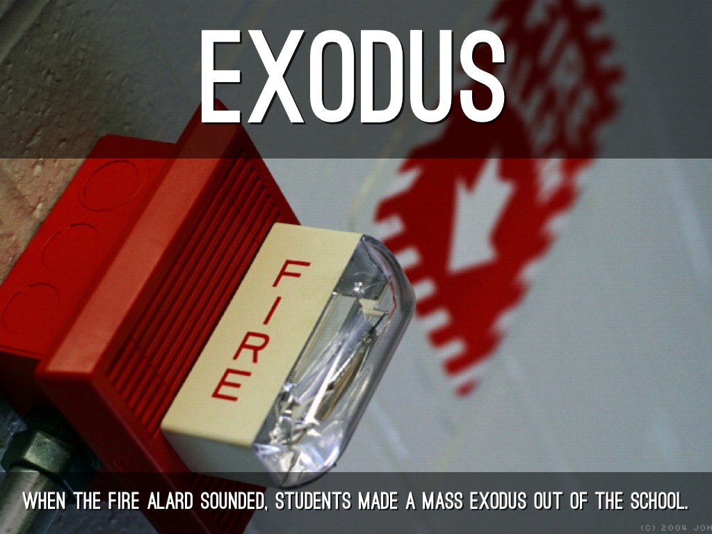 WHEN THE FIRE ALARD SOUNDED, STUDENTS MADE A MASS EXODUS OUT OF THE SCHOOL.