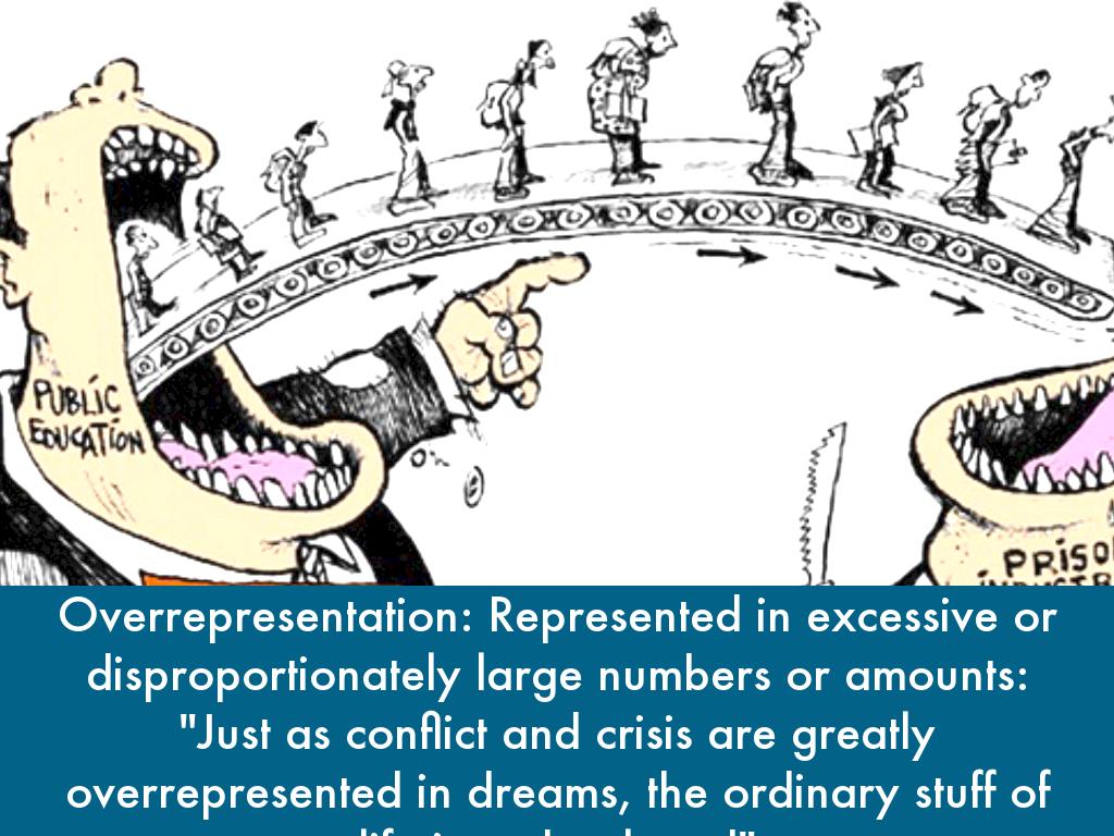 Overrepresentation: Represented in excessive or disproportionately large numbers or amounts: "Just as conflict and crisis are greatly overrepresented in dreams, the ordinary stuff of life is underplayed"