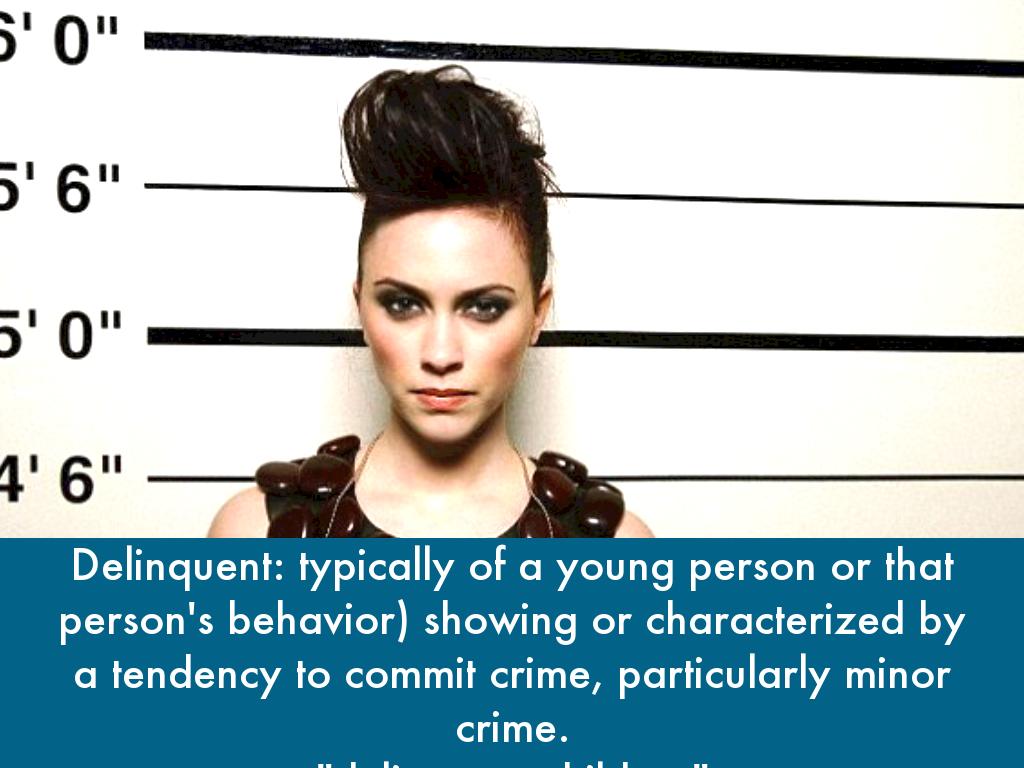 Delinquent: typically of a young person or that person's behavior) showing or characterized by a tendency to commit crime, particularly minor crime.