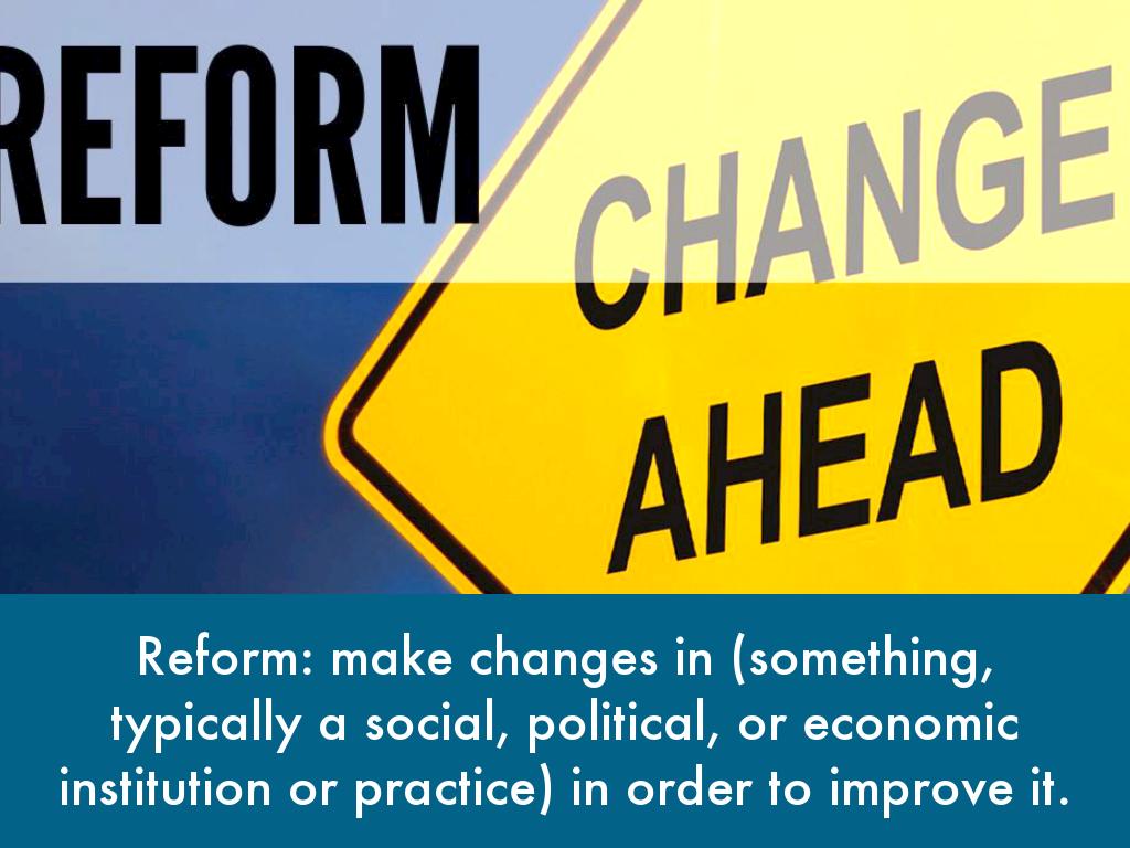 Reform: make changes in (something, typically a social, political, or economic institution or practice) in order to improve it.