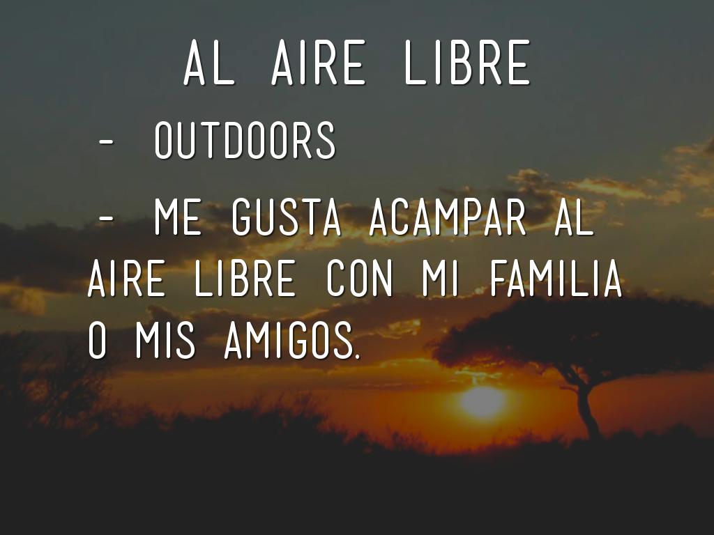 - Me gusta acampar al aire libre con mi familia o mis amigos.