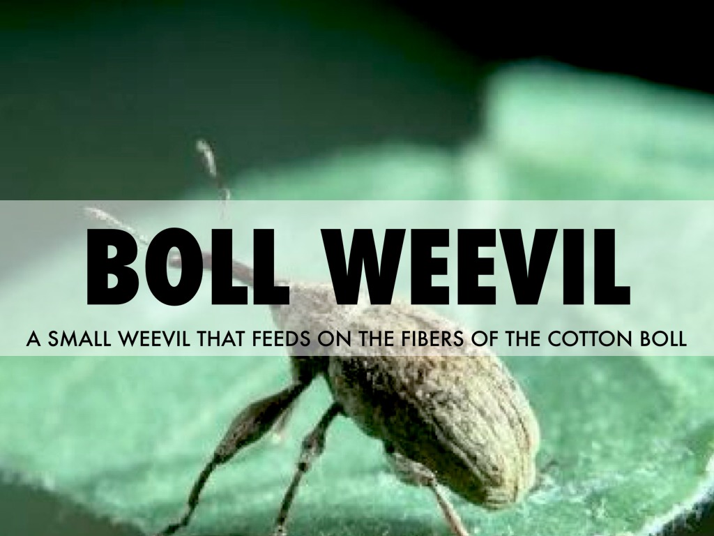A SMALL WEEVIL THAT FEEDS ON THE FIBERS OF THE COTTON BOLL