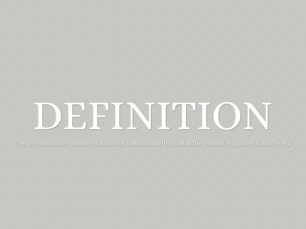 The arts and other manifestations of human intellectual achievement regarded collectively.