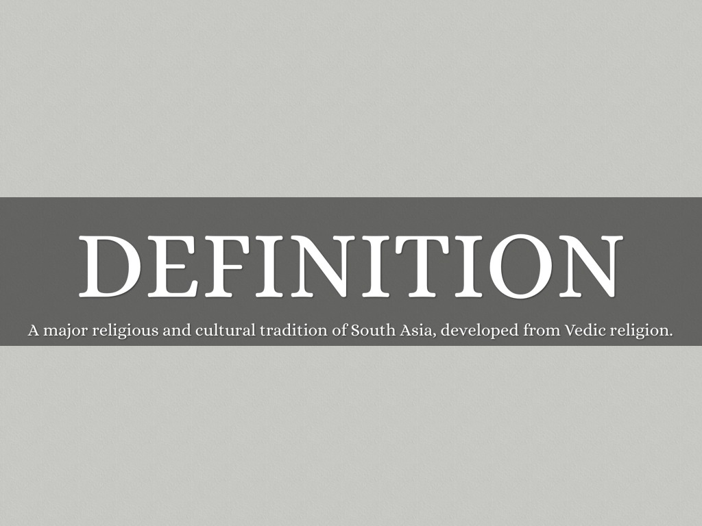 A major religious and cultural tradition of South Asia, developed from Vedic religion.