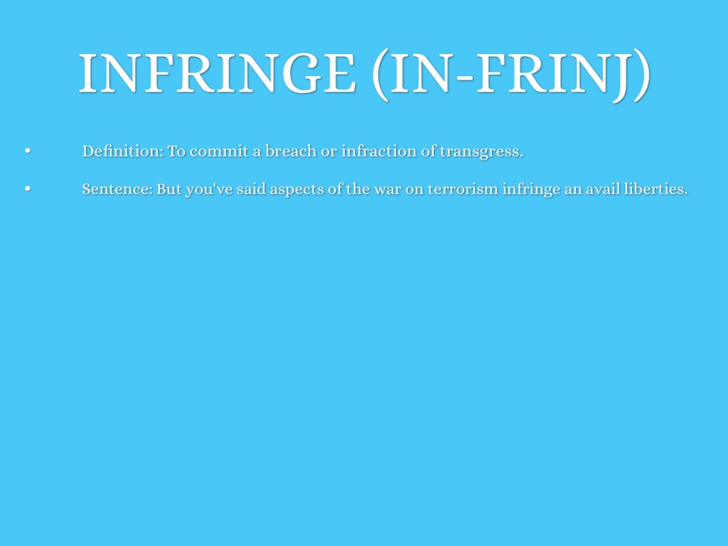 • Sentence: But you've said aspects of the war on terrorism infringe an avail liberties.