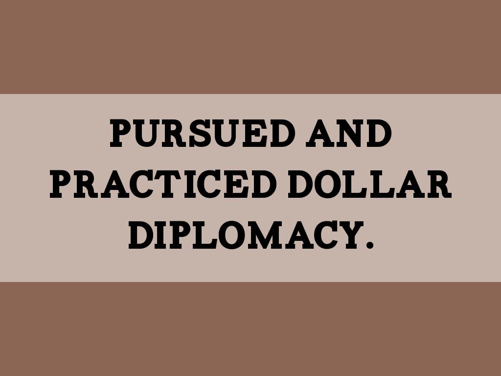 Pursued and practiced Dollar diplomacy.