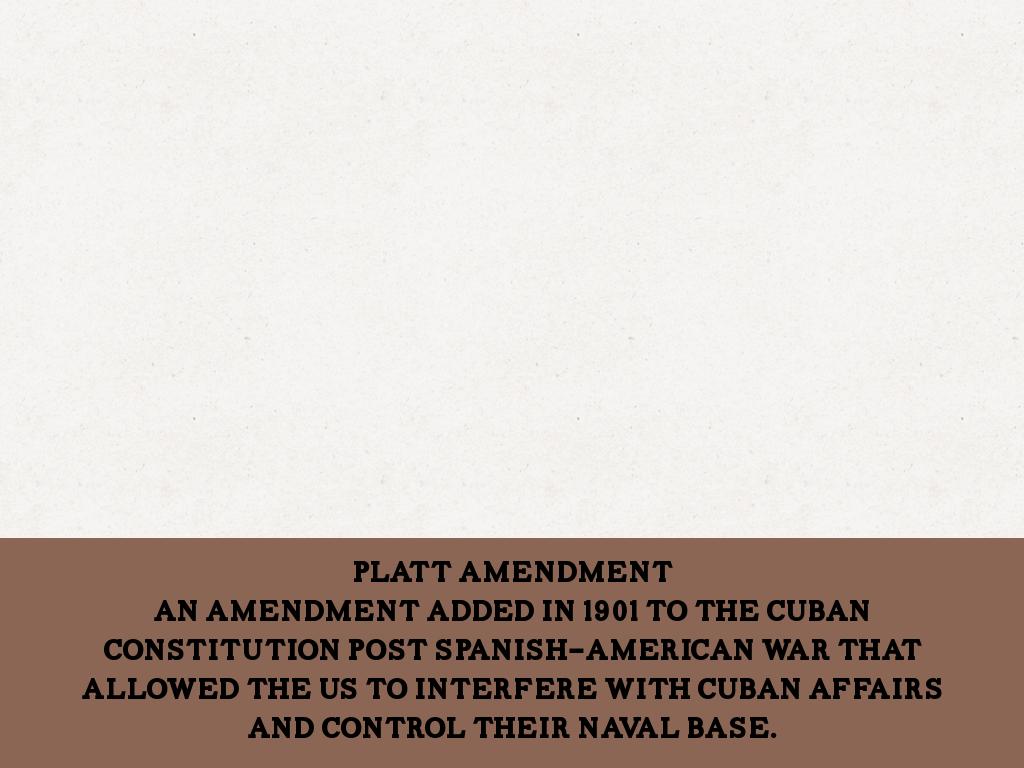 Named after Platt, An amendment added in 1901 to the cuban constitution post Spanish-American War that allowed the US to interfere with Cuban affairs and control their naval base.