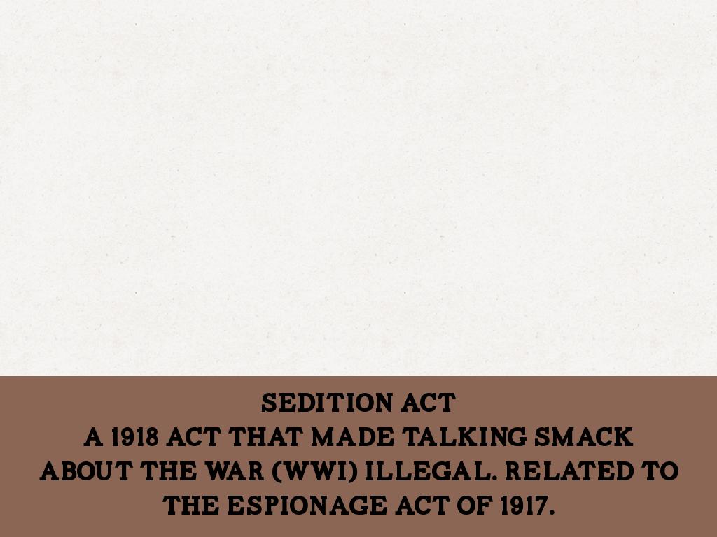 A 1918 act that made talking smack about the war (WWI) illegal. Related to the espionage act of 1917.