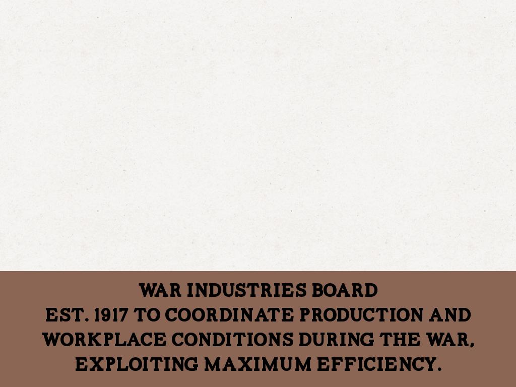 Est. 1917 to coordinate production and workplace conditions during the war, exploiting maximum efficiency.