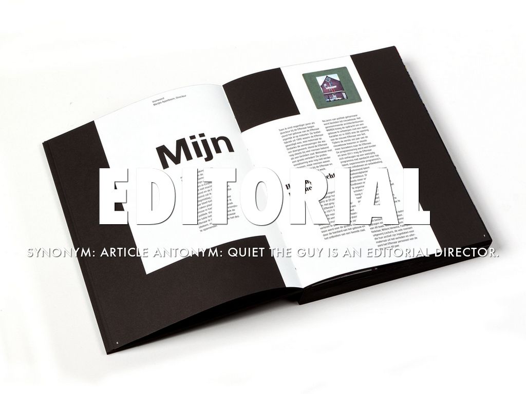 SYNONYM: ARTICLE ANTONYM: QUIET THE GUY IS AN EDITORIAL DIRECTOR.