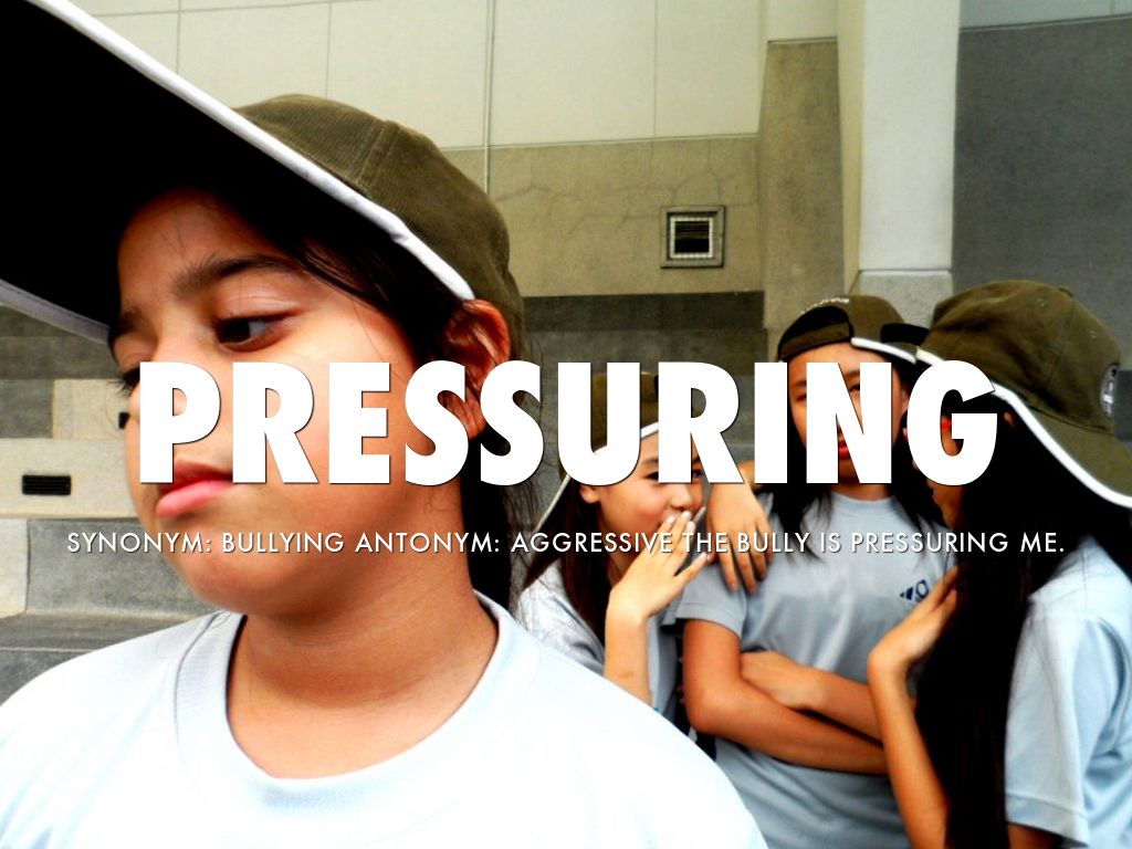 SYNONYM: BULLYING ANTONYM: AGGRESSIVE THE BULLY IS PRESSURING ME.