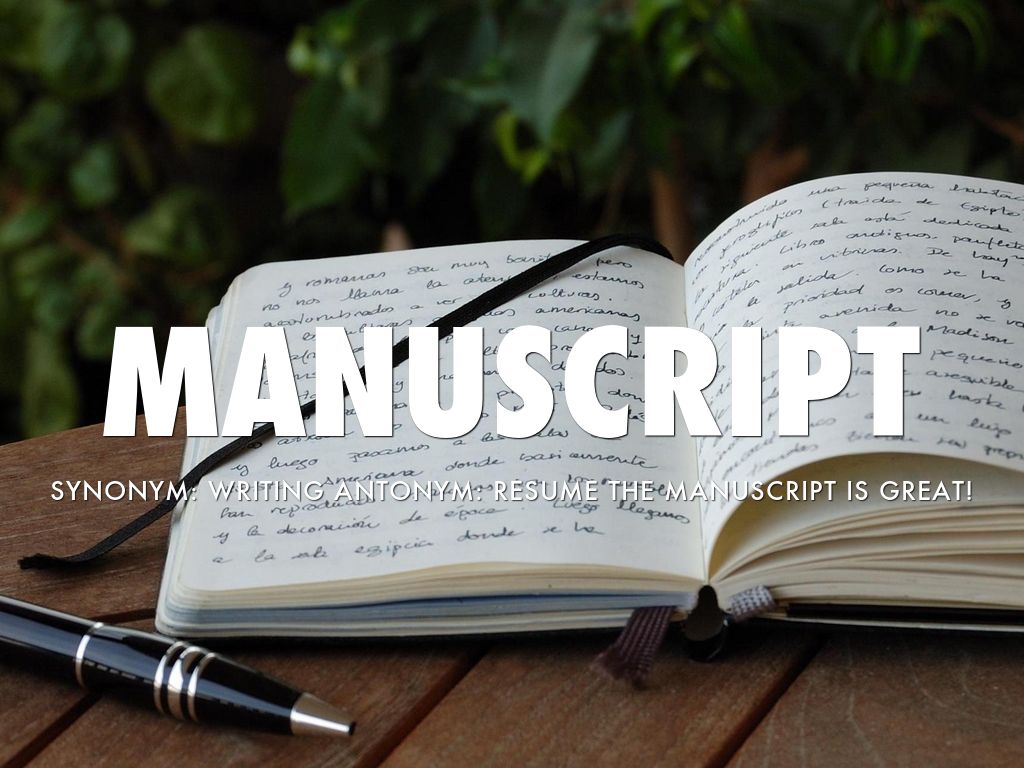 SYNONYM: WRITING ANTONYM: RÉSUMÉ THE MANUSCRIPT IS GREAT!