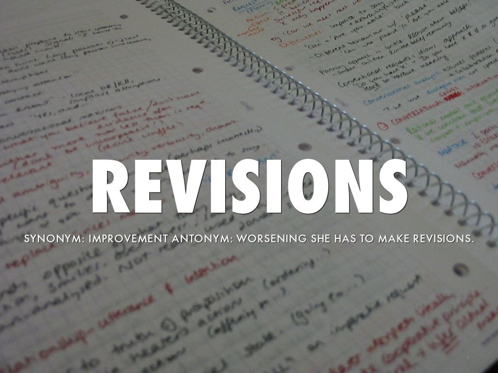 SYNONYM: IMPROVEMENT ANTONYM: WORSENING SHE HAS TO MAKE REVISIONS.