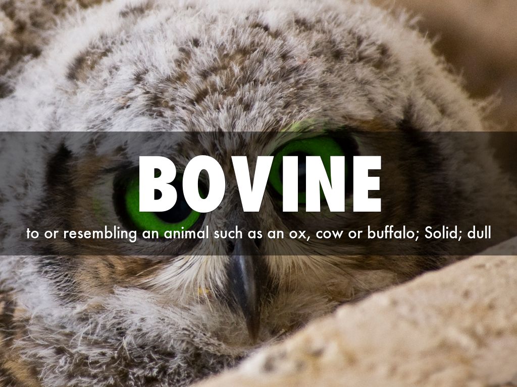 to or resembling an animal such as an ox, cow or buffalo; Solid; dull