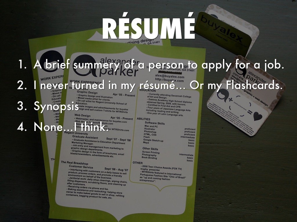 I never turned in my résumé... Or my Flashcards.