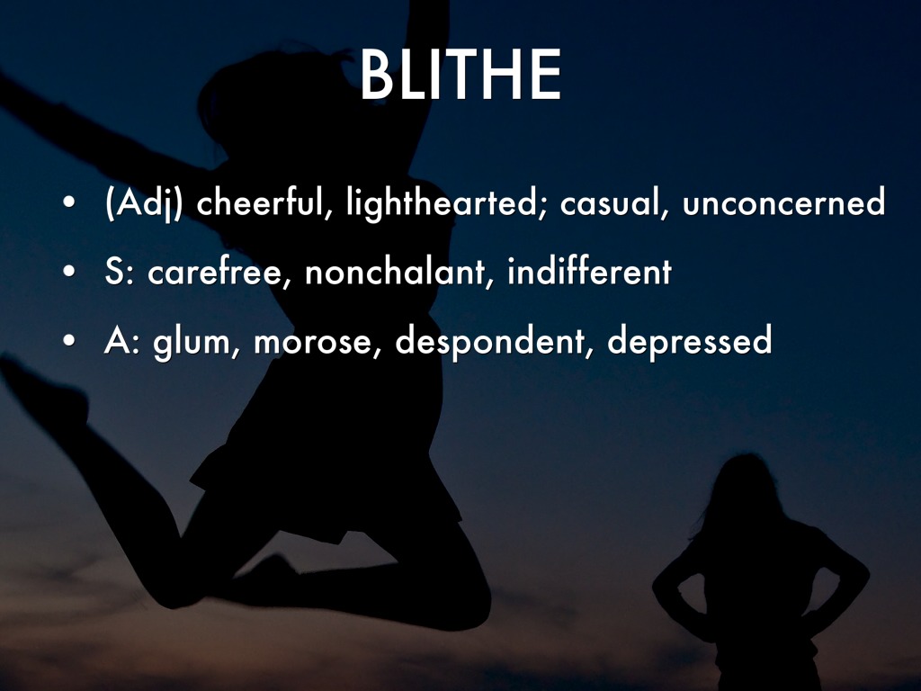 (Adj) cheerful, lighthearted; casual, unconcerned