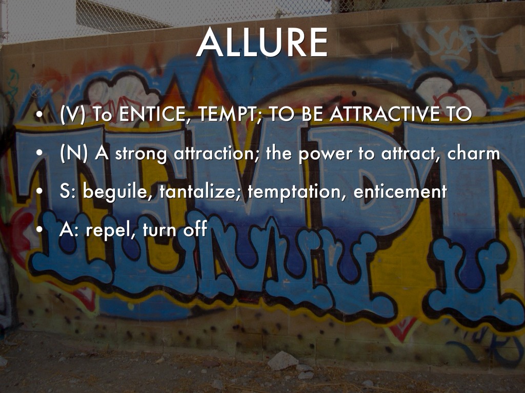 (V) To ENTICE, TEMPT; TO BE ATTRACTIVE TO