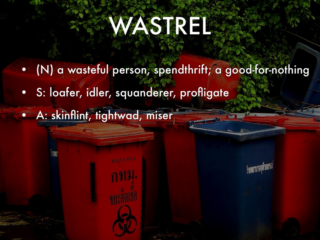 (N) a wasteful person, spendthrift; a good-for-nothing