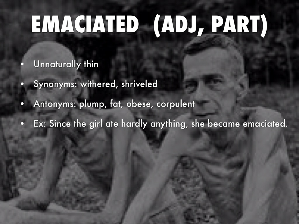 Ex: Since the girl ate hardly anything, she became emaciated.