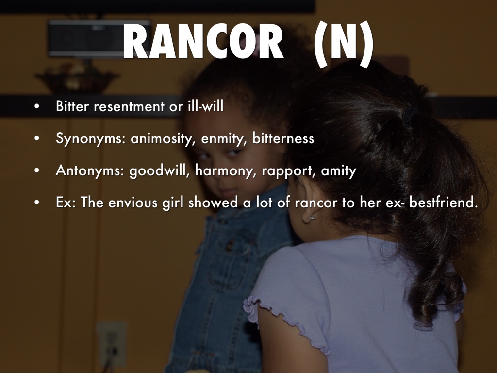 Ex: The envious girl showed a lot of rancor to her ex- bestfriend.