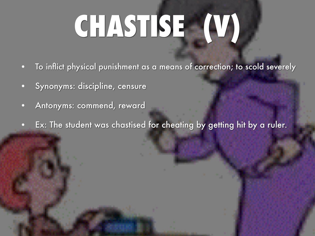 Ex: The student was chastised for cheating by getting hit by a ruler.