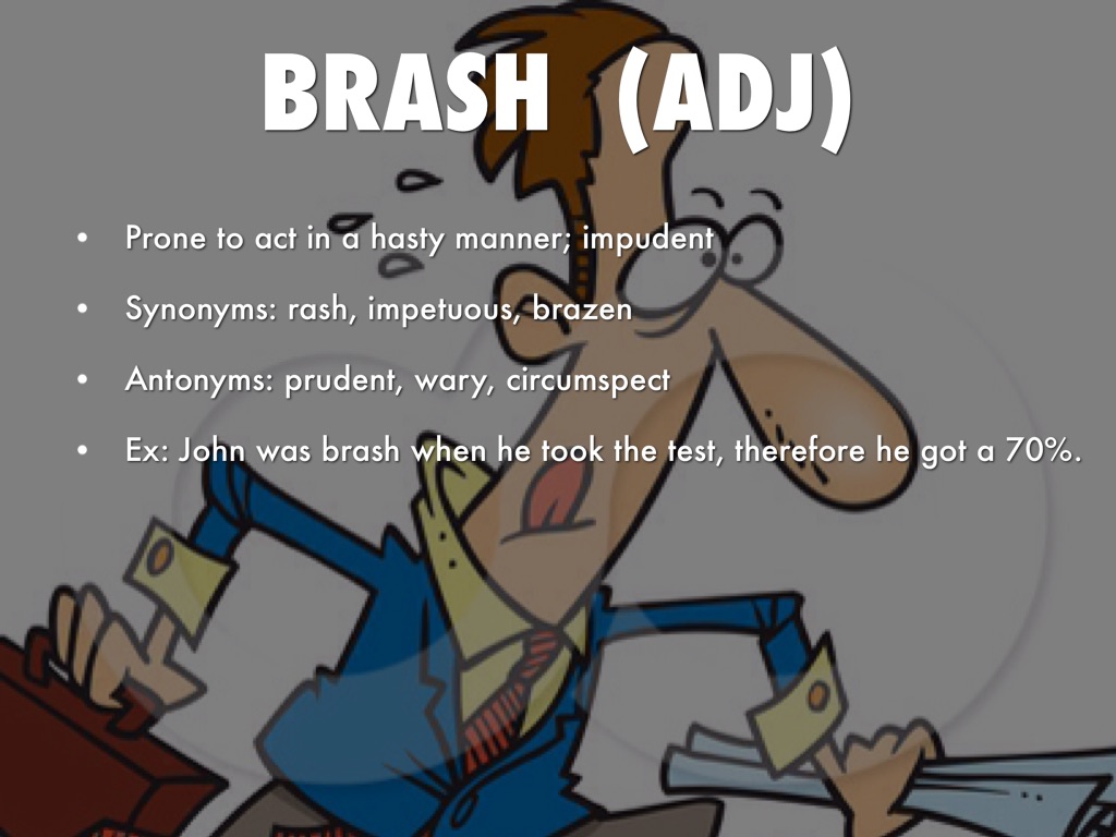 Ex: John was brash when he took the test, therefore he got a 70%.