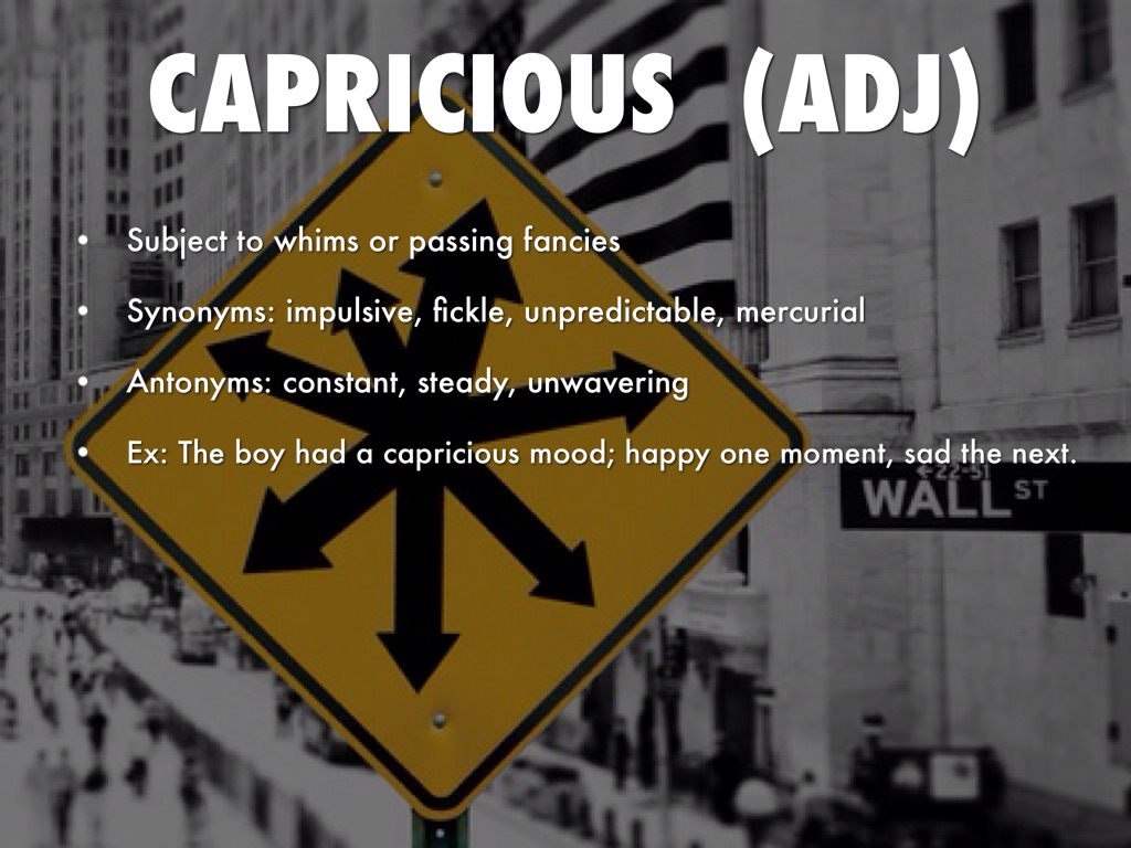 Synonyms: impulsive, fickle, unpredictable, mercurial