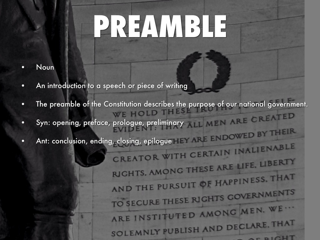 The preamble of the Constitution describes the purpose of our national government.