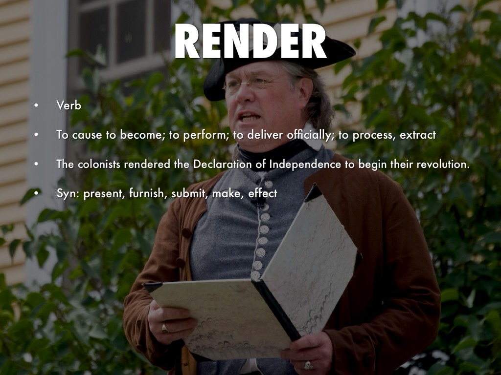 The colonists rendered the Declaration of Independence to begin their revolution.