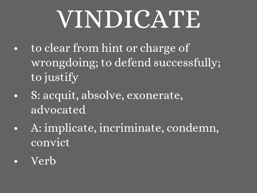 to clear from hint or charge of wrongdoing; to defend successfully; to justify