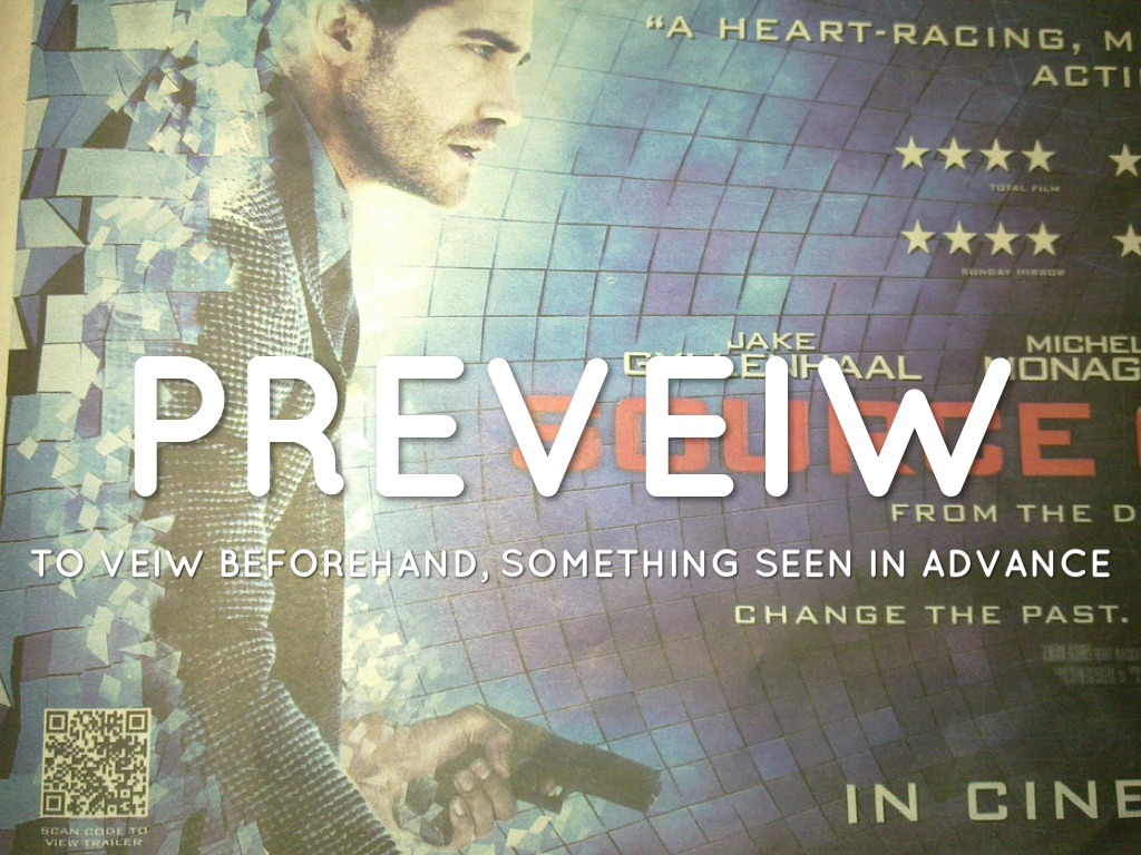 TO VEIW BEFOREHAND, SOMETHING SEEN IN ADVANCE