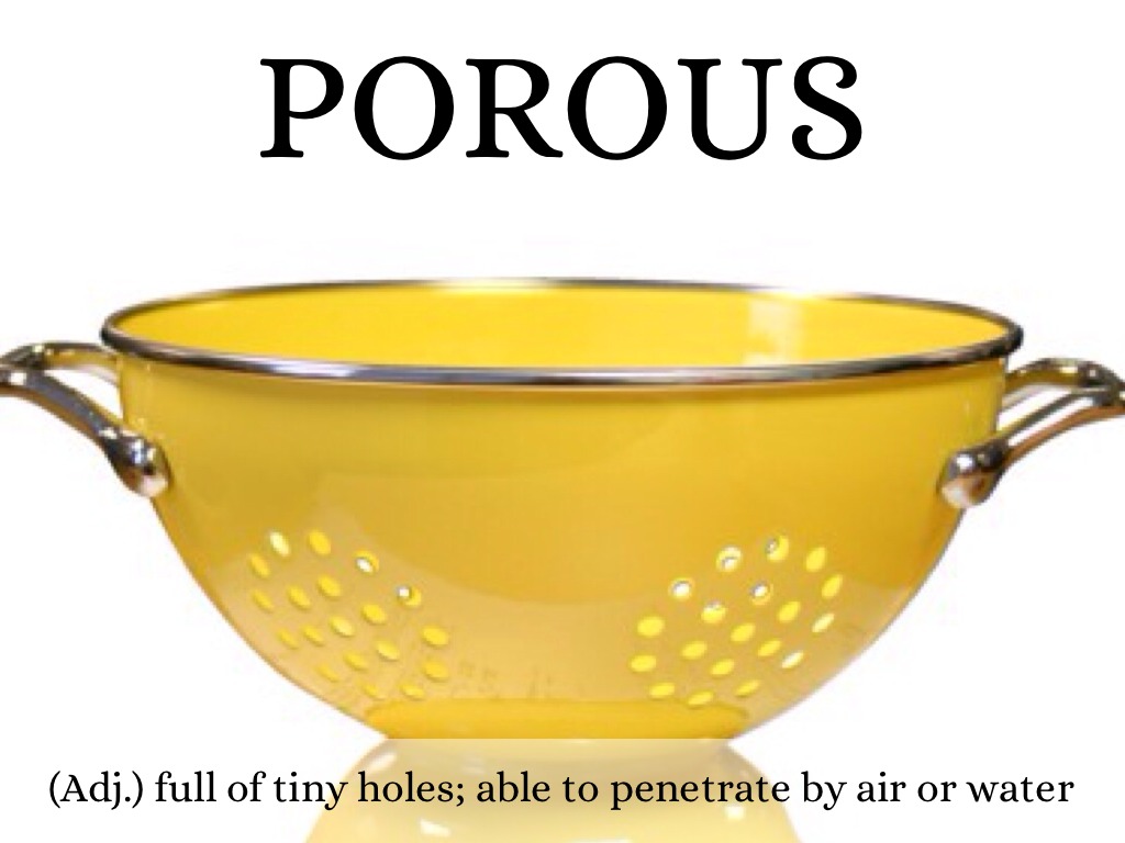(Adj.) full of tiny holes; able to penetrate by air or water