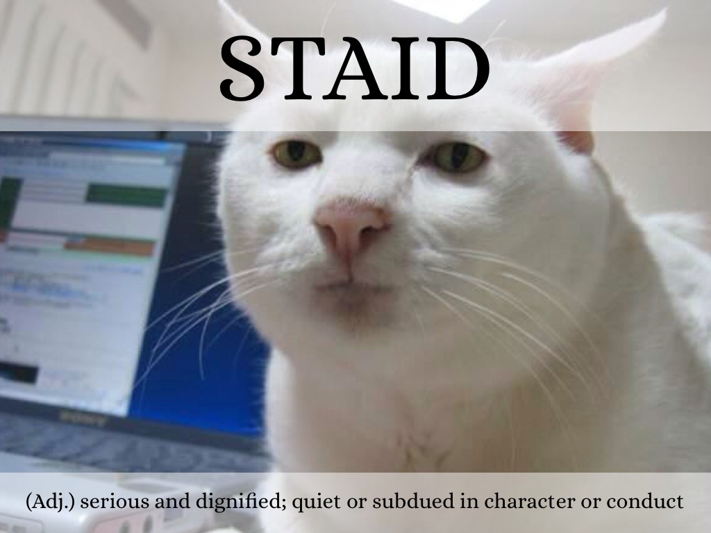 (Adj.) serious and dignified; quiet or subdued in character or conduct