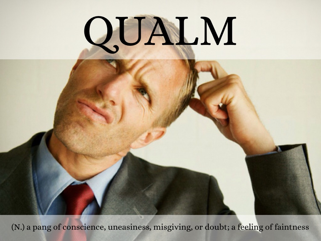 (N.) a pang of conscience, uneasiness, misgiving, or doubt; a feeling of faintness
