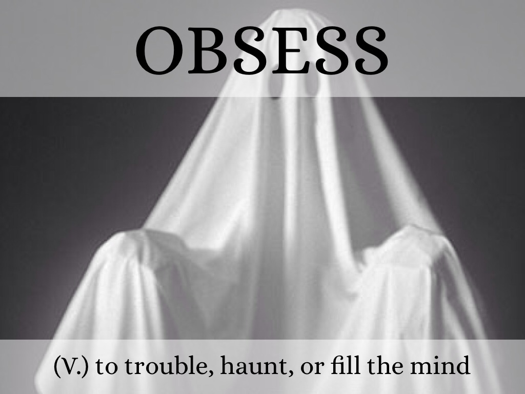 (V.) to trouble, haunt, or fill the mind