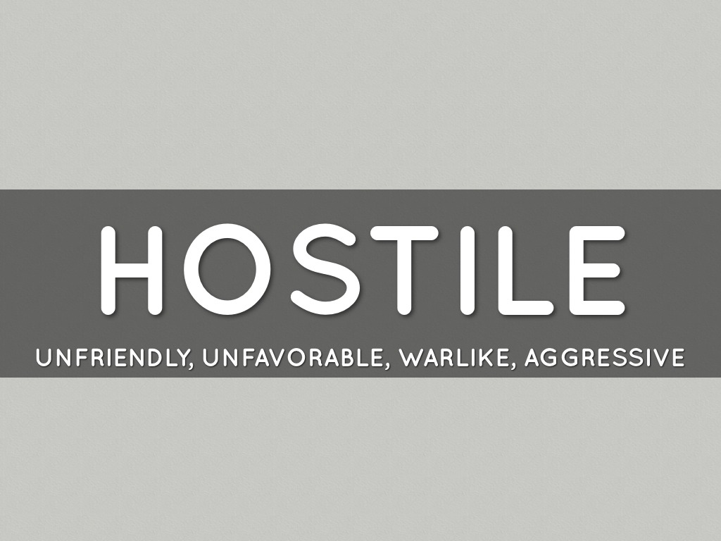 UNFRIENDLY, UNFAVORABLE, WARLIKE, AGGRESSIVE