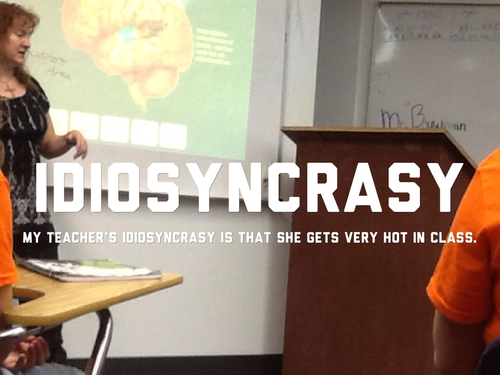 MY TEACHER'S IDIOSYNCRASY IS THAT SHE GETS VERY HOT IN CLASS.