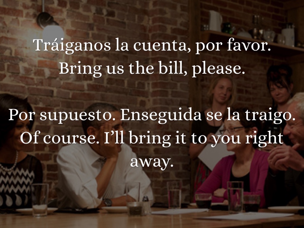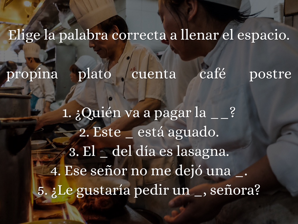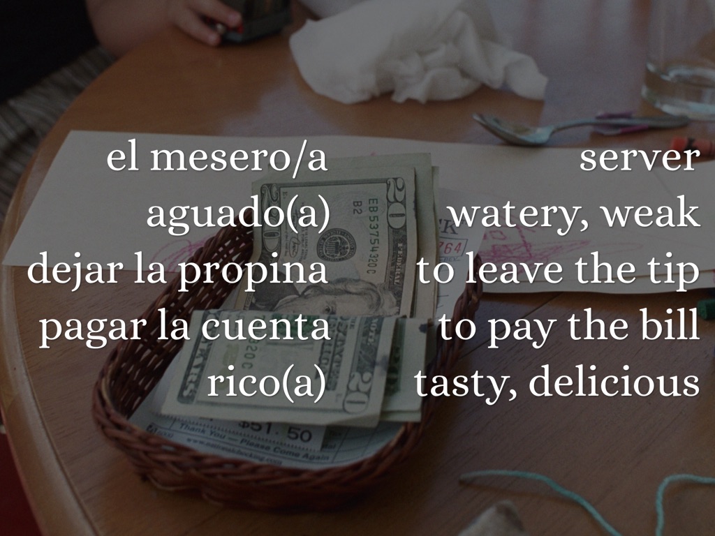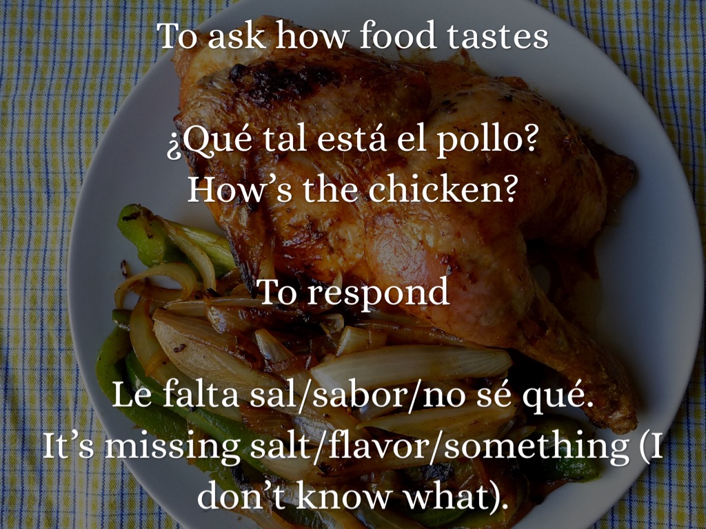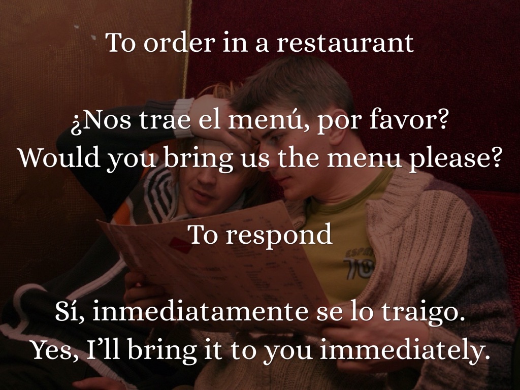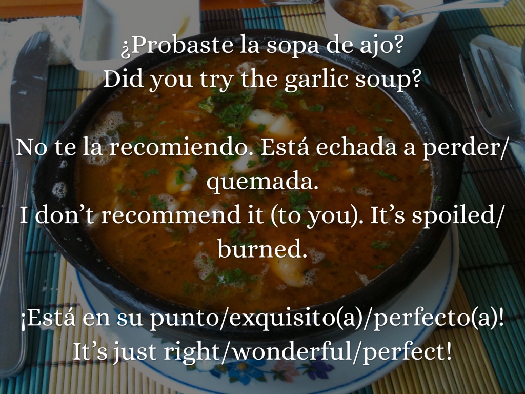 Pues, el plato del día está muy sabroso. Se lo recomiendo. Es carne asada con plátanos. Well, the daily special is very good. I recommend it (to you). It’s roast beef with plantains.
